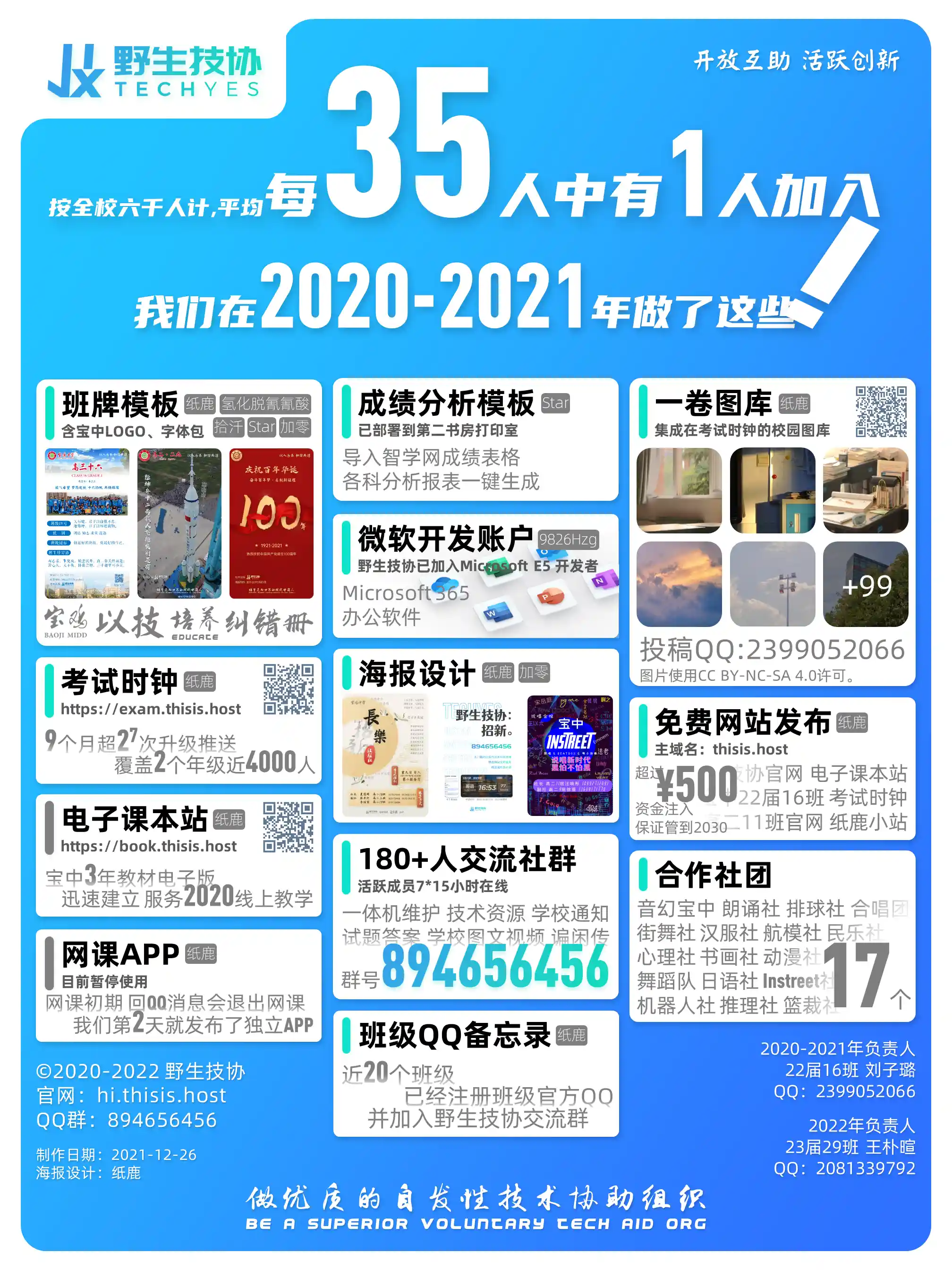 考试时钟是年级之间相互借鉴经验的产物。20级考试使用了“在线北京时间”网站,随后,19级联系我制作了考试时钟并报销了考试时钟在腾讯云的费用。 考试时钟被推荐到了20级(未产生额外开销),但21级没有使用的打算。我在不断学习的过程中完善了考试时钟系统,...